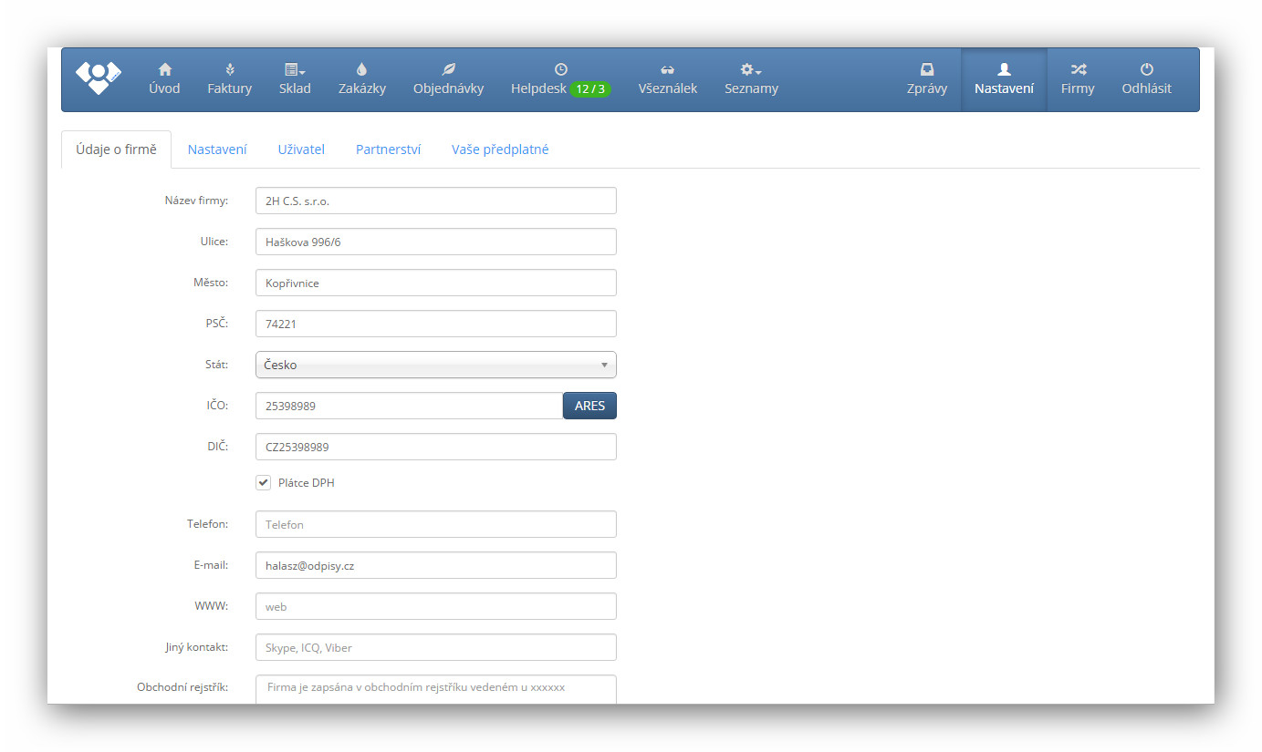 Počet povolených firem závisí jen na zvoleném tarifu. Uživatele můžete také jednoduše přidávat a přidělovat jim přístupová práva.