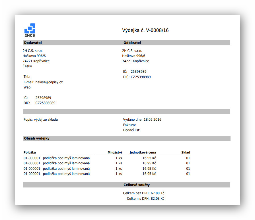 Jednoduchá skladová evidence, kterou zvládne každý. Splňuje přesně to co od skladu potřebuje každá firma.
